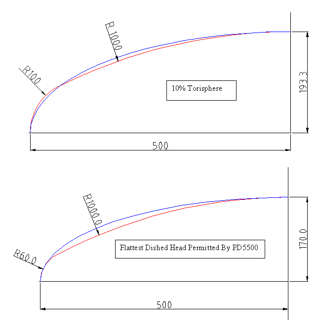 relationship between:- Knuckle radius, Spherical radius and Diameter used. |